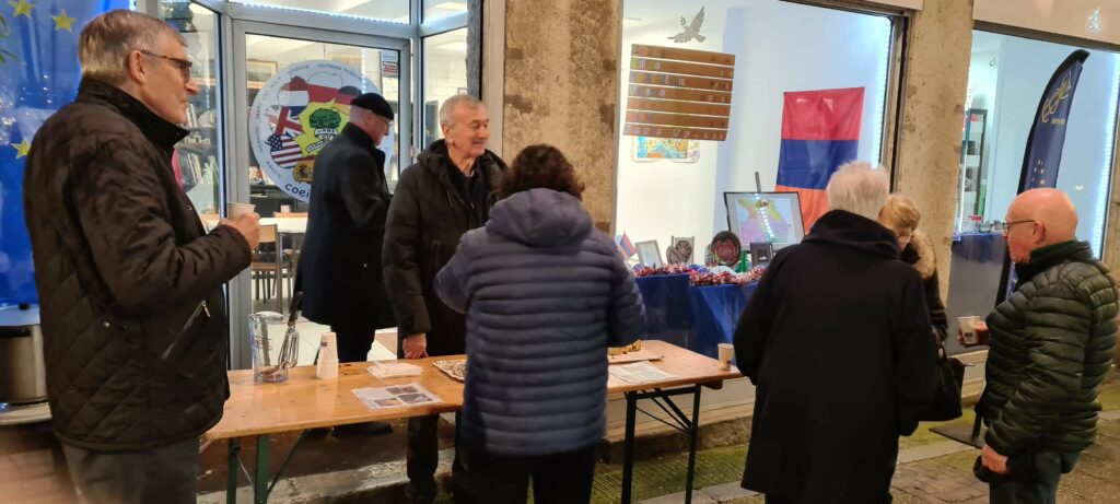NOTRE LOCAL EST UN PEU EXCENTRE PAR RAPPORT AUX ANIMATIONS DU CENTRE VILLE. BEAUCOUP DE MONDE DANS LA RUE AVEC DANS LES MAINS SOUPES, VIN CHAUD, CREPES… ET DONC PEU D’INTERET POUR NOTRE STAND. UNE SOIREE UN PEU DECEVANTE POUR LE COEI.