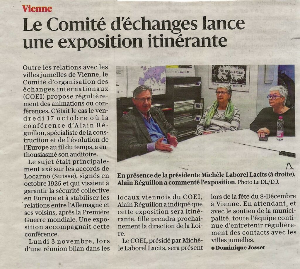 LE 17 OCTOBRE, ALAIN REGUILLON, NOUS PRESENTAIT LE FRUIT DE SES RECHERCHES CONCERNANT LES ACCORDS DE LOCARNO. L’ASSISTANCE ETAIT AU RENDEZ-VOUS ET NOUS AVONS APPRIS BEAUCOUP DE CHOSES.